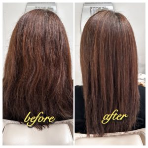 髪質改善トリートメントは、1回だけでも効果を実感できますが、継続することでさらに髪質が安定していきます。M様には2ヶ月後の再来店をおすすめしました。